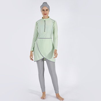 צבע ירוק 3 יחידות בגדי ים מוסלמי בורקיני שרוולים ארוכים בגדי ים מוסלמים מוסלמים לנשים מוסלמיות